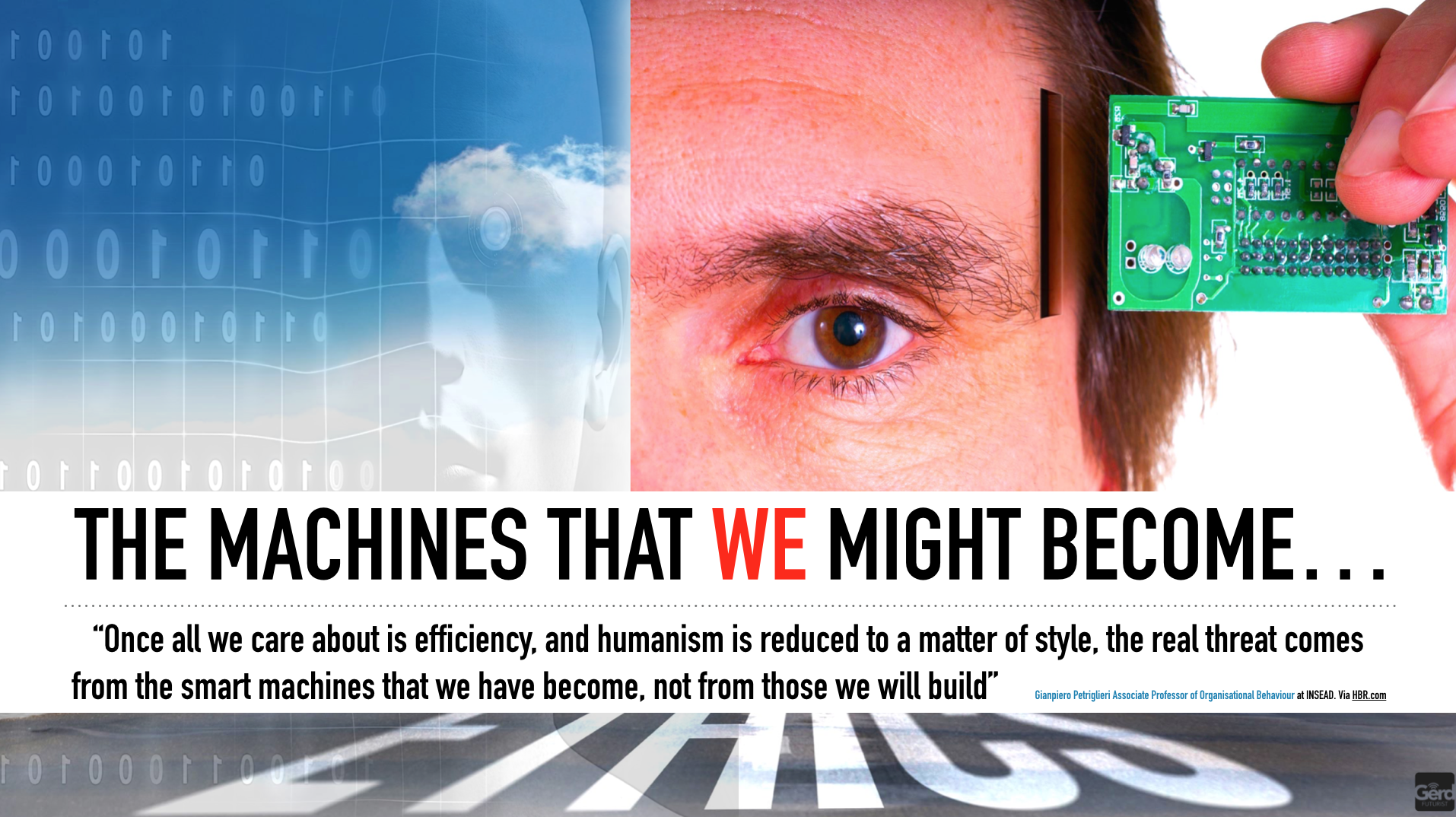 I just ran across this HBR Blog post entitled “Technology is not threatening humanity – we are” which delivers a few key messages when looking at the future of technology and humanity (in red, below)