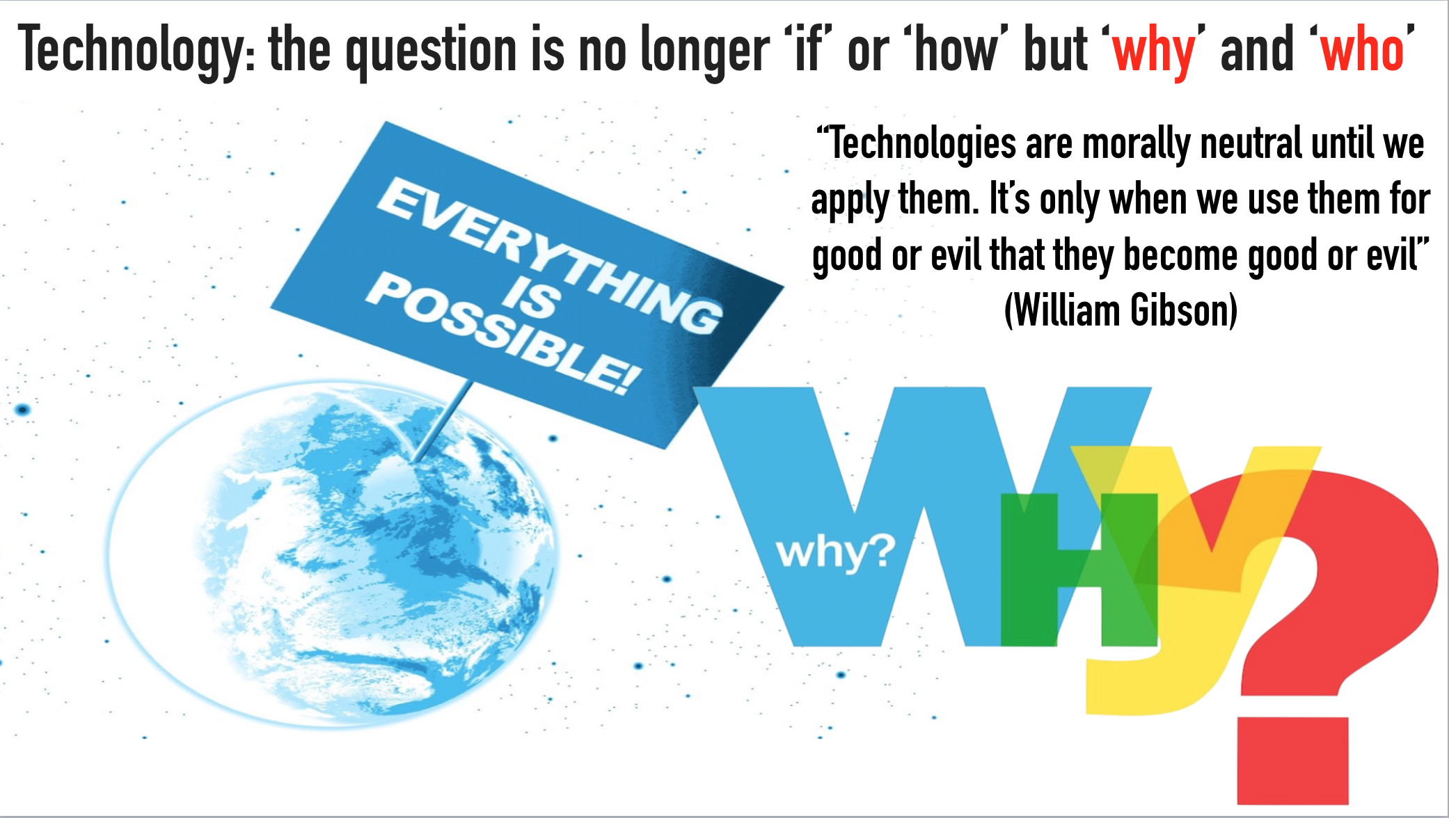 The urgent need for a new framework of human+/-machine ethics is greatly amplified when we realise that we can stop wondering whether technology can actually do something (or not), but whether it should do something, i.e. the if or how is being replaced by the why (followed by who, when and where). Specifically in regards to machine intelligence and deep learning, should we go boldly beyond mere deductive reasoning and allow smart software, robots, and artificial intelligence (AI) to advance to abductive reasoning, i.e. to go beyond their programming and to possibly open the door to some kind of recursive self-learning? Would this cause an uncontrollable ‘intelligence explosion’? If autonomous machines are to be a part of our future (already a certainty in the military), will we need to provide them with some kind of moral agency, i.e. a human-like capacity to decide what is right or wrong even if the facts are incomplete? Where is this going? Destination transhumanism?