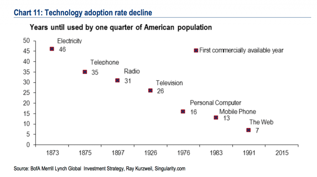 “If you wanted relief from stories about tyre factories and steel plants closing, you could try relaxing with a new 300-page report from Bank of America Merrill Lynch (Gerd adds: link goes to a PDF — must read!!) which looks at the likely effects of a robot revolution. But you might not end up reassured. Though it promises robot carers for an ageing population, it also forecasts huge numbers of jobs being wiped out: up to 35% of all workers in the UK and 47% of those in the US, including white-collar jobs, seeing their livelihoods taken away by machines.”